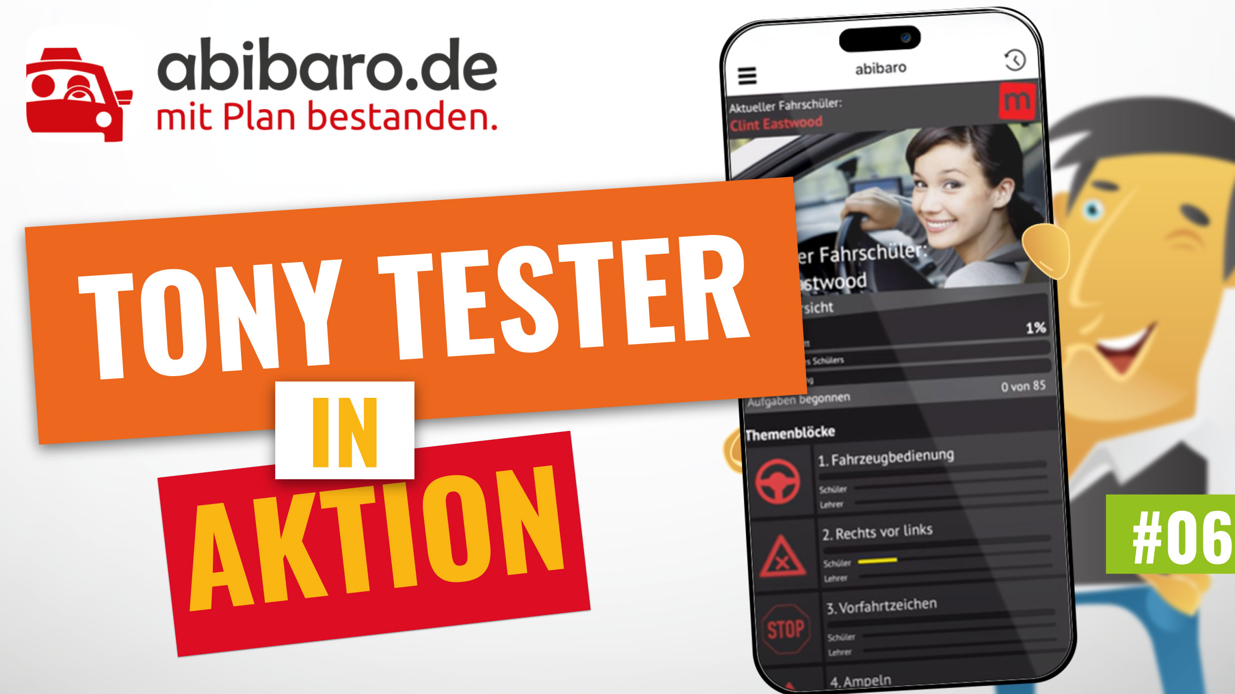 Willst du abibaro in vollem Umfang ausprobieren? Tony Tester ist deine Eintrittskarte! Er ermöglicht es dir, abibaro mit all seinen Funktionen zu erleben – ein kostenfreies Testprofil, das dich in die Welt der modernen Fahrausbildung einführt.